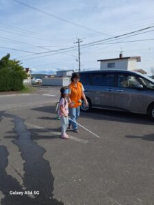 体験の広場の様子です。車いすと、視覚障がい体験を行いました。